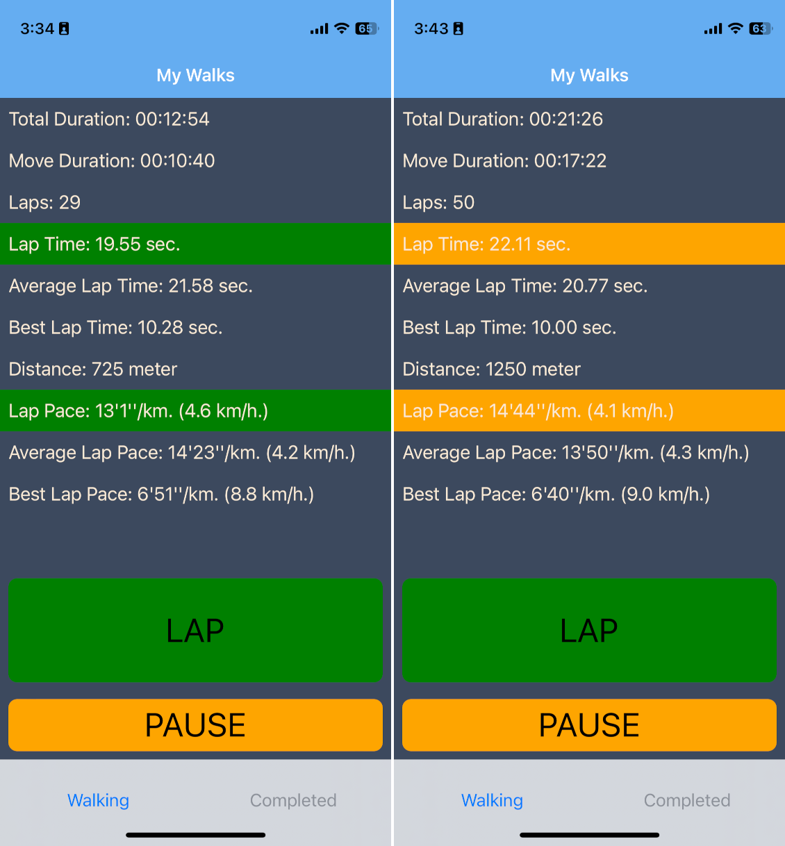 Accurate tracking: The Walking App accurately measures the user's pace and distance during walks, providing precise data to track their progress or regression over time.